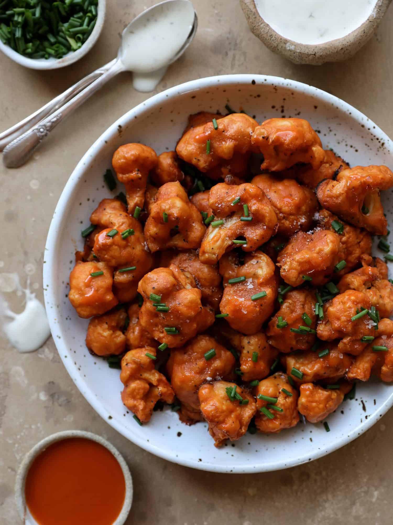 The crunch factor! No one wants a soggy wing, so I’ll go on the record and tell you that no one wants a soggy cauliflower wing, either. I assure you, you’ll get that crunch that we all know and love.