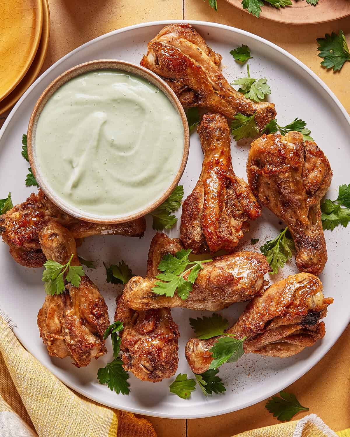 But wait! There’s more. Don’t forget the herby tangy sauce you’re going to dip it in. It’s cool, tangy, herby, and a tiny bit spicy. It’s perfect for cutting through the richness of the chicken. I love making this dinner when I want something comforting but a little bit elevated. Whether you toss these in the air fryer or put tin them oven is completely up to you. Either way, you’re going to love em!