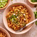 Once the noodles are done, divide them evenly amongst four bowls. Serve them immediately, and enjoy!