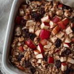 Sprinkle some apple cubes into the bottom of the baking dish.