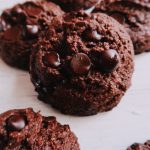 Next, add the almond flour, cacao powder, baking soda, and salt. Mix everything together, and then fold in the chocolate chips.