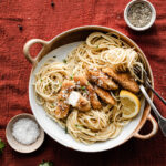 1 ½ pounds boneless skinless chicken breasts 3 large eggs 2 cloves garlic mashed 1 tablespoon Italian seasoning 1 teaspoon sea salt 1 ¼ cups finely grated parmesan cheese ¼ cup gluten-free bread crumbs ¼ cup gluten-free flour ¼ cup avocado oil or coconut oil 2 tablespoons butter or ghee Garnish: chopped parsley flaky salt, black pepper, and lemon wedges!