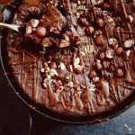 Remove from oven, and while the skillet is cooking, melt the chocolate bar.