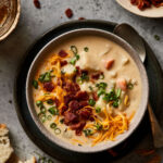 Once the potatoes are done, transfer about 1/2-3/4 of the soup to a blender, and blend until creamy. Then, transfer it back to the large pot and stir together. You might have to work in batches, but that's okay! The key is that we still want some chunks in the soup while still keeping it creamy.