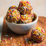 Classic celebration cake with a side of protein?! Say no more. These No-Bake Celebration Bites taste JUST like a classic vanilla birthday cake that you know and love, but have an ample amount of protein to keep you full and satisfied. Plus, they are also gluten-free, grain-free, and raw, and vegan-optional, so they are truly the perfect treat for anyone!