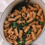 Return lid and turn heat off. NOTE: by this point, the liquid should be about 80-90% absorbed. If you are using gluten free pasta, it will take longer for the liquid to absorb, so wait about 20 minutes to eat.