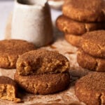 THE COOKIES: 2 cups almond flour ¼ cup pumpkin puree ¼ cup maple syrup 1 tsp vanilla extract 3 tbsp coconut oil, melted 1 tsp pumpkin pie spice I make my own by using this recipe ! ¼ tsp salt 1 tsp baking powder THE TOPPING: ¼ cup coconut sugar 1 tsp cinnamon
