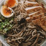 Once soft (about 5 min), remove from heat. divide ramen among two bowls.