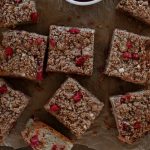 Line an 8x8 baking dish with parchment paper (grease the inside well so that the parchment paper sticks).